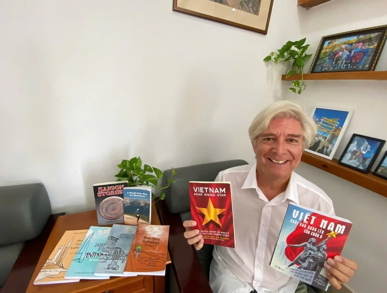 Sam is the author of five published books. Saigon Stories, an oral history of Vietnam (2006), A World Gone Mad for Marathons, a nonfiction book on marathons and other sporting events (2019), Vietnam – Asia’s Rising Star, a book about the future of Vietnam (October 2023 in English and August 2024 in Vietnamese), and Never Say No, a memoir that he helped to write for the author Ken Atkinson (2025). He is currently publishing one more book, 40 Years of Innovators, profiling 25 key leaders of the Doi Moi (economic reform) era of Vietnam. It will be published by Alpha Books in January 2026 in English and Vietnamese. Sam is the founder and lead instructor of the Saigon Writers Club which hosts private and in-person creative writing classes for people who have always wanted to write and publish fiction. It has hosted 19 creative writing classes and published five short story anthologies. He writes and publishes two newsletters, a weekly newsletter on Vietnam’s economic developments and a bi-weekly newsletter on sports. The newsletters have an average open rate of more than 50 percent.